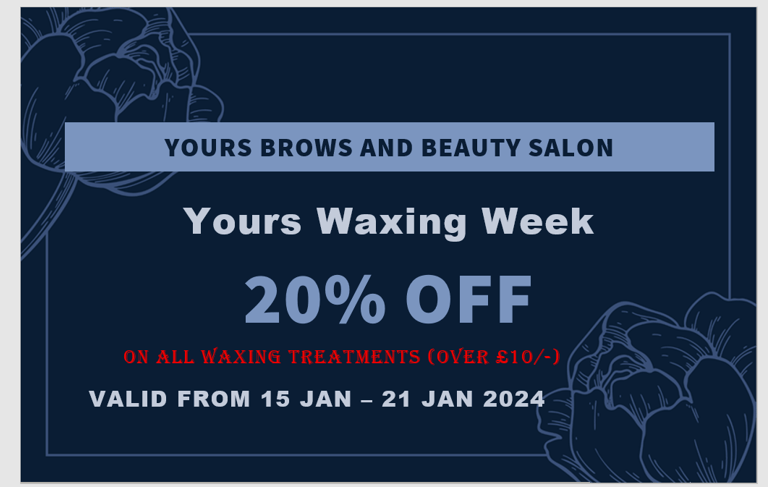 On the 3rd week, we have a special offer of a 20% discount on all waxing treatments for spends over £10.