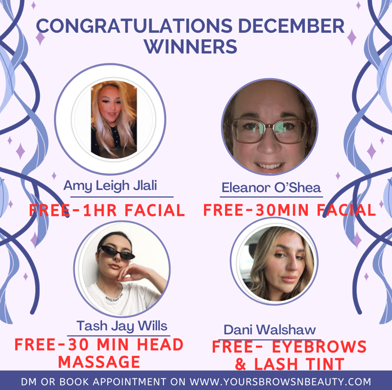 Amy Leigh Jlali has won the first prize, winning a free 1-hour facial treatment. Amy stood out by actively engaging with our social (Instagram, Facebook, Twitter, TikTok, Threads) posts through sharing, tagging, mentioning, commenting, liking and recommending "yours Brows and Beauty" salon and social platforms with her friends.